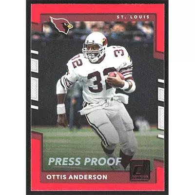 This is a 2017 Donruss Press Proof Red Ottis Anderson football card. The card is #242 and pictures show condition.