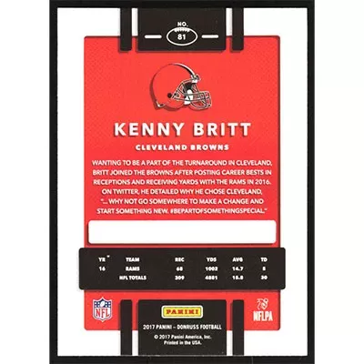 This is a 2017 Donruss Press Proof Red Kenny Britt football card. The card is #81 and pictures show condition.
