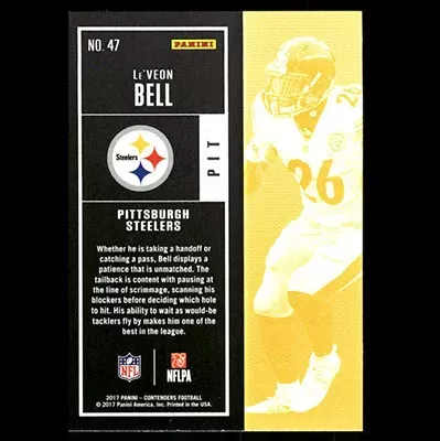 This is a 2017 Panini Contenders Le'Veon Bell football card. The card is #47 . See images for condition.