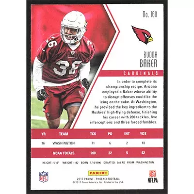 This is a 2017 Panini Phoenix Budda Baker football card. The card is #160 and pictures show condition.