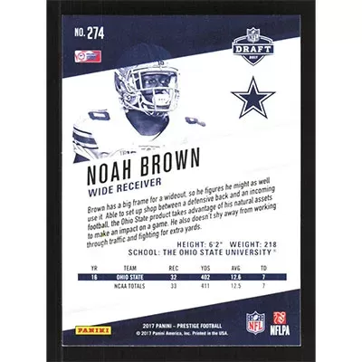 This is a 2017 Prestige Noah Brown football card. The card is #274 and pictures show condition.