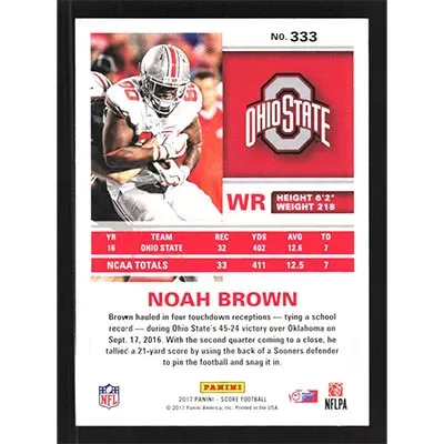 This is a 2017 Score Noah Brown football card. The card is #333 and pictures show condition.