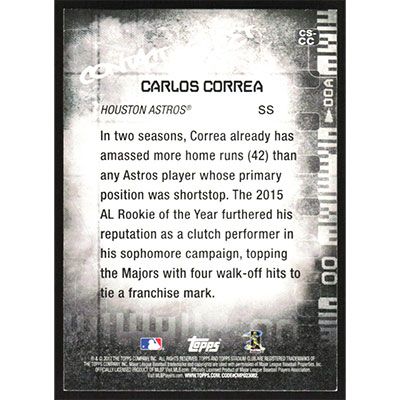 This is a 2017 Stadium Club Contact Sheet Carlos Correa baseball card. The card is #CS-CC and pictures show condition.