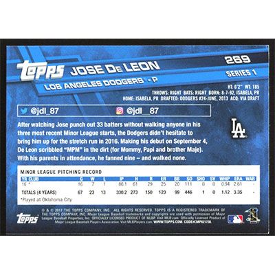This is a 2017 Topps Jose De Leon baseball card. The card is #269 and pictures show condition.