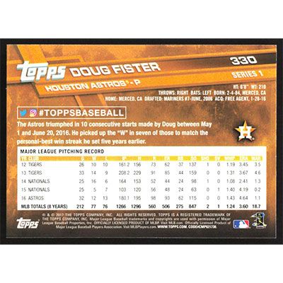 This is a 2017 Topps Doug Fister baseball card. The card is #330 and pictures show condition.