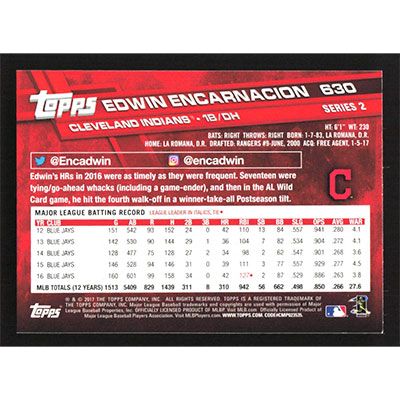 This is a 2017 Topps Edwin Encarnacion baseball card. The card is #630 and pictures show condition.