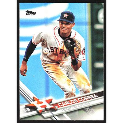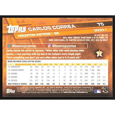 This is a 2017 Topps Carlos Correa baseball card. The card is #75 and pictures show condition.