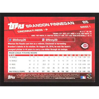 This is a 2017 Topps Brandon Finnegan baseball card. The card is #85 and pictures show condition.