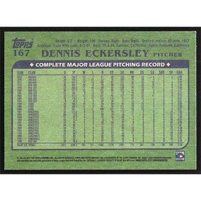 This is a 2017 Topps Archives Dennis Eckersley baseball card. The card is #167 and pictures show condition.