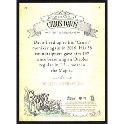 This is a 2017 Topps Gypsy Queen Chris Davis baseball card. The card is #242 and pictures show condition.