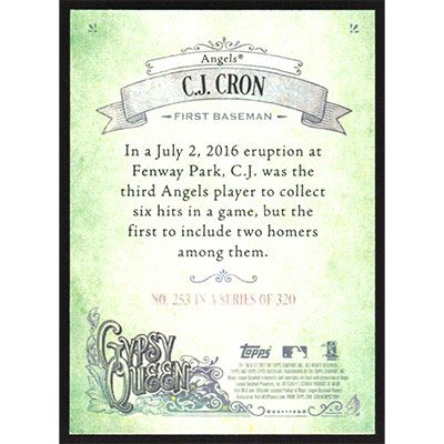 This is a 2017 Topps Gypsy Queen Green Back C.J. Cron baseball card. The card is #253 and pictures show condition.