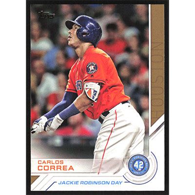 This is a 2017 Topps Jackie Robinson Day Carlos Correa baseball card. The card is #JRD-13 and pictures show condition.