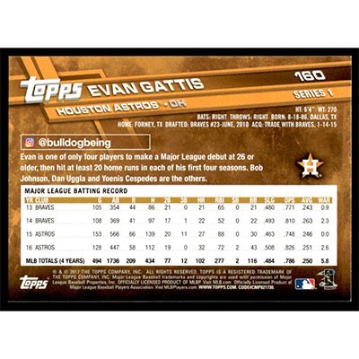 This is a 2017 Topps Rainbow Foil Evan Gattis baseball card. The card is #160 and pictures show condition.