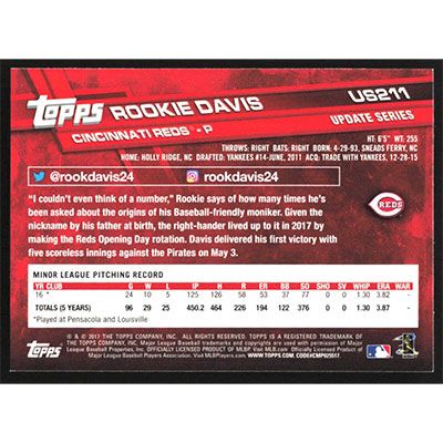 This is a 2017 Topps Update Rookie Davis baseball card. The card is #US211 and pictures show condition.