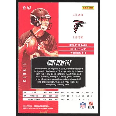 This is a 2018 Absolute Kurt Benkert football card. The card is #143 and pictures show condition.