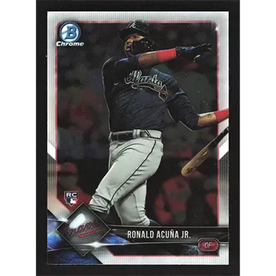 This is a 2018 Bowman Chrome Ronald Acuña Jr. baseball card. The card is #40 and pictures show condition.