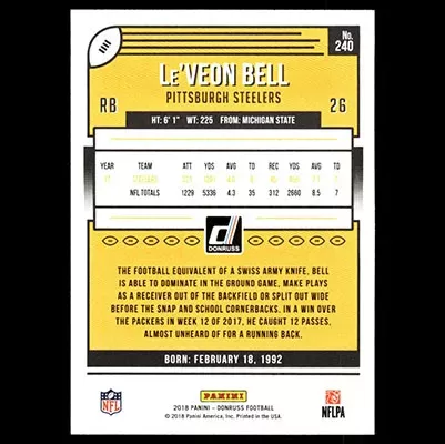 This is a 2018 Donruss Le'Veon Bell football card. The card is #240 . See images for condition.