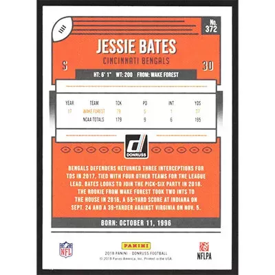 This is a 2018 Donruss Jessie Bates football card. The card is #372 and pictures show condition.