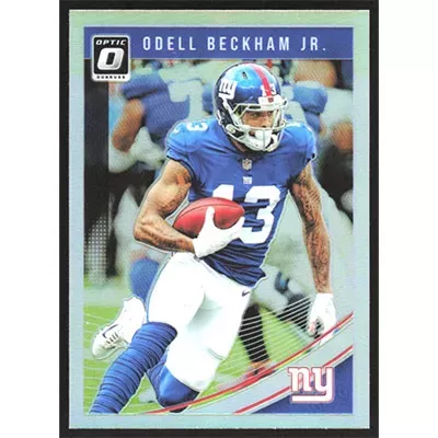 This is a 2018 Donruss Optic Holo Odell Beckham Jr. football card. The card is #72 and pictures show condition.
