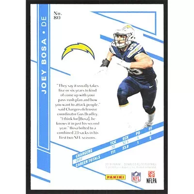 This is a 2018 Elite Joey Bosa football card. The card is #80 and pictures show condition.