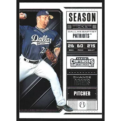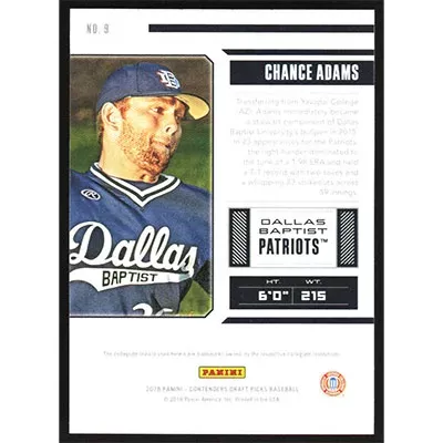 This is a 2018 Panini Contenders Draft Picks Chance Adams baseball card. The card is #9 and pictures show condition.