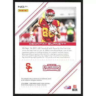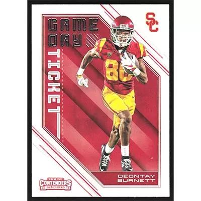 This is a 2018 Panini Contenders Draft Picks Game Day Ticket Deontay Burnett football card. The card is #31 and pictures show condition.