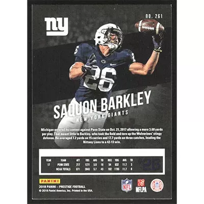 This is a 2018 Prestige Saquon Barkley football card. The card is #261 and pictures show condition.