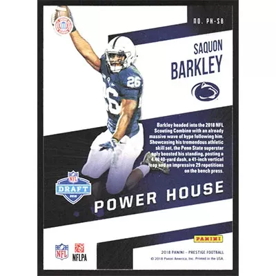 This is a 2018 Prestige Power House Saquon Barkley football card. The card is #PH-SB and pictures show condition.