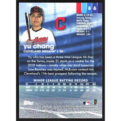 This is a 2018 Stadium Club Chrome Yu Chang baseball card. The card is #86 and pictures show condition.