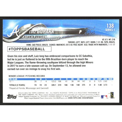 This is a 2018 Topps Luiz Gohara baseball card. The card is #138 and pictures show condition.