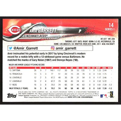This is a 2018 Topps Amir Garrett baseball card. The card is #14 and pictures show condition.