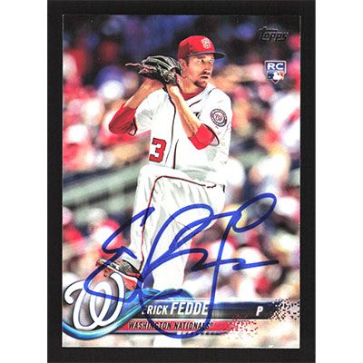 This is a 2018 Topps Erick Fedde autographed baseball card. This card has been signed, in blue, by Erick Fedde, and is guaranteed authentic by Ballcardz.com. The card is #217 and pictures show condition.