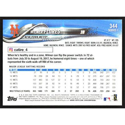 This is a 2018 Topps Wilmer Flores baseball card. The card is #344 and pictures show condition.