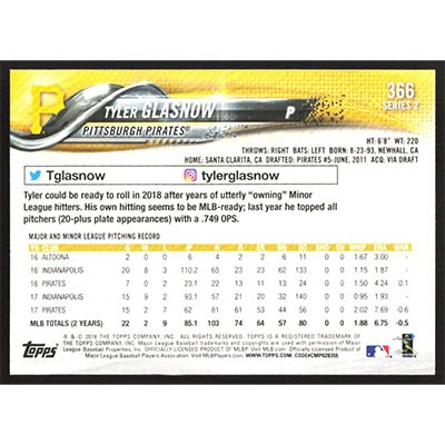 This is a 2018 Topps Tyler Glasnow Future Stars baseball card. The card is #366 and pictures show condition.