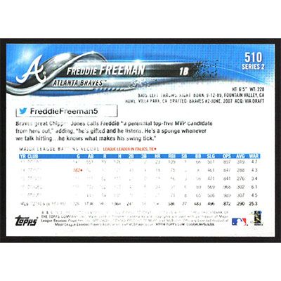 This is a 2018 Topps Freddie Freeman baseball card. The card is #510 and pictures show condition.