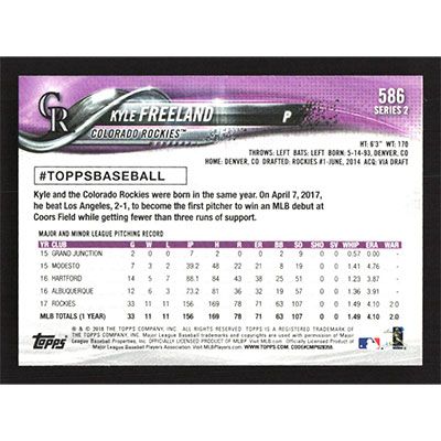 This is a 2018 Topps Kyle Freeland baseball card. The card is #586 and pictures show condition.
