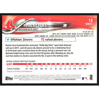 This is a 2018 Topps All-Star Game Silver Rafael Devers baseball card. The card is #18 and pictures show condition. Team(s): Boston Red Sox Rookie Card (RC)