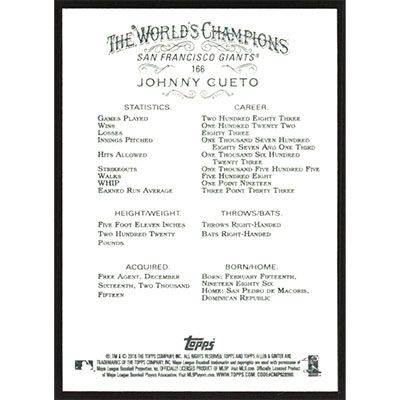 This is a 2018 Topps Allen & Ginter Johnny Cueto baseball card. The card is #166 and pictures show condition.