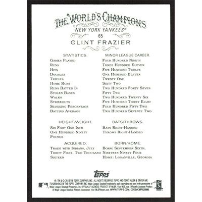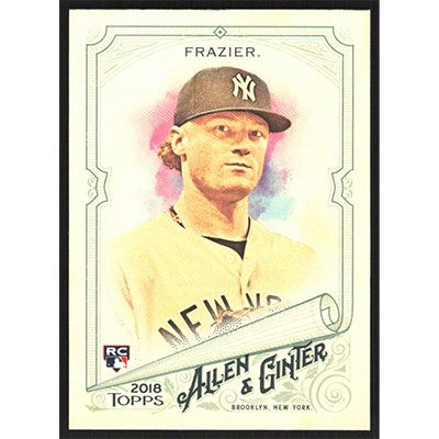 This is a 2018 Topps Allen & Ginter Clint Frazier baseball card. The card is #65 and pictures show condition. Team(s): New York Yankees Rookie Card (RC)