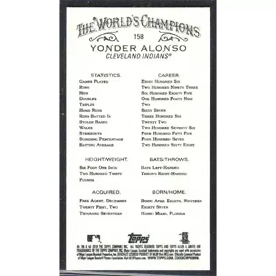 This is a 2018 Topps Allen & Ginter Mini Yonder Alonso baseball card. The card is #158 and pictures show condition.