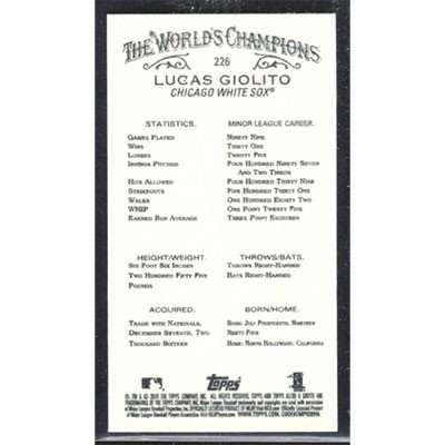 This is a 2018 Topps Allen & Ginter Mini Black Border Lucas Giolito baseball card. The card is #226 and pictures show condition. Team(s): Chicago White Sox