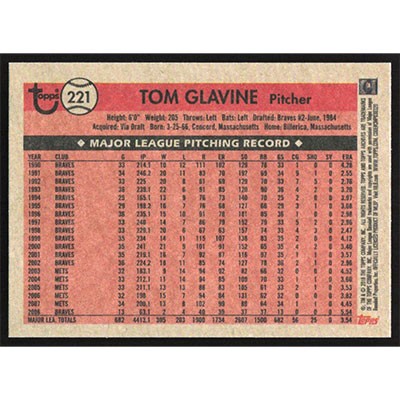 This is a 2018 Topps Archives Tom Glavine baseball card. The card is #221 and pictures show condition.