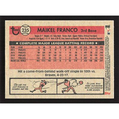 This is a 2018 Topps Archives Maikel Franco baseball card. The card is #235 and pictures show condition.
