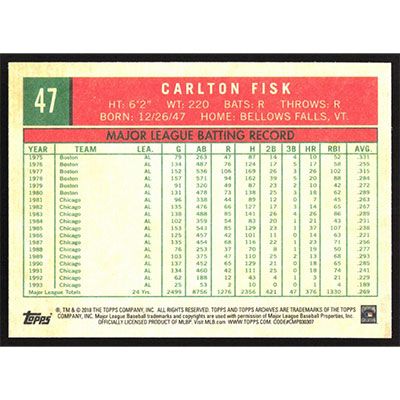 This is a 2018 Topps Archives Carlton Fisk baseball card. The card is #47 and pictures show condition.