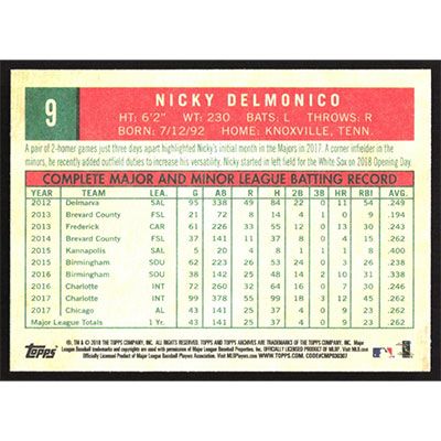 This is a 2018 Topps Archives Nicky Delmonico baseball card. The card is #9 and pictures show condition. Team(s): Chicago White Sox Rookie Card (RC)
