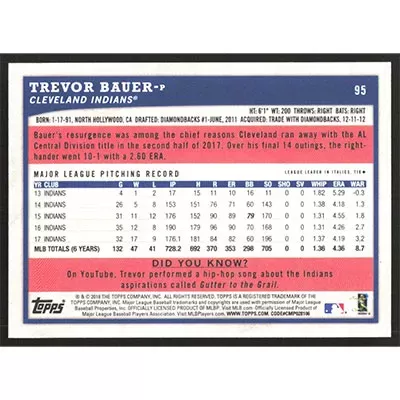 This is a 2018 Topps Big League Trevor Bauer baseball card. The card is #95 and pictures show condition.