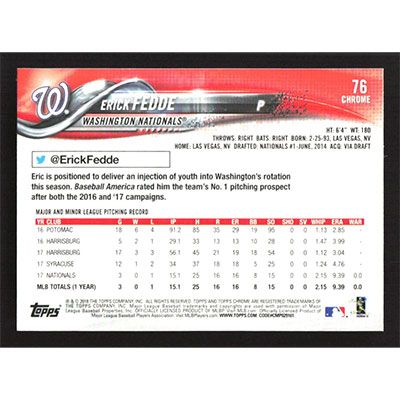 This is a 2018 Topps Chrome Erick Fedde baseball card. The card is #76 and pictures show condition.