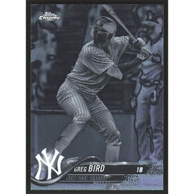 This is a 2018 Topps Chrome Black and White Negative Refractors Greg Bird baseball card. The card is #174 and pictures show condition. Team(s): New York Yankees