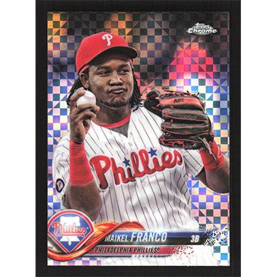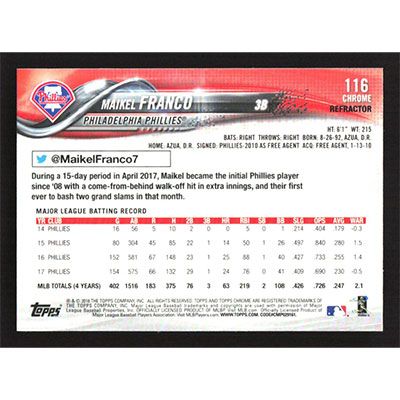 This is a 2018 Topps Chrome X-Fractors Maikel Franco baseball card. The card is #116 and pictures show condition.