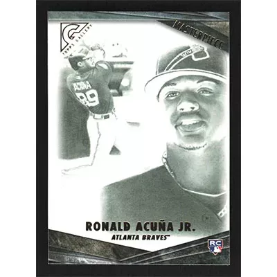 This is a 2018 Topps Gallery Masterpiece Ronald Acuña Jr. baseball card. The card is #M-27 and pictures show condition. Team(s): Atlanta Braves Rookie Card (RC)